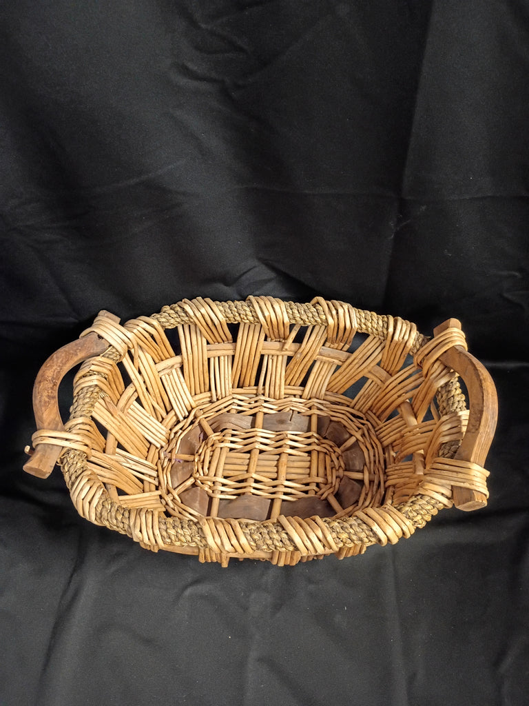 Lovely wicker bread basket measuring 18"L x 6"W x 12"H. In great condition.