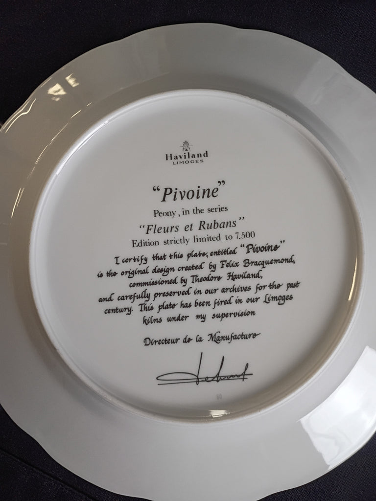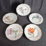 Haviland Limoges Fleurs et Rubans Plates . Set of 5 plates. Included in the set is: Wild Garlic, Peony, Hibiscus, Orchid, and Lily. Each plate measures 10". All in great condition.