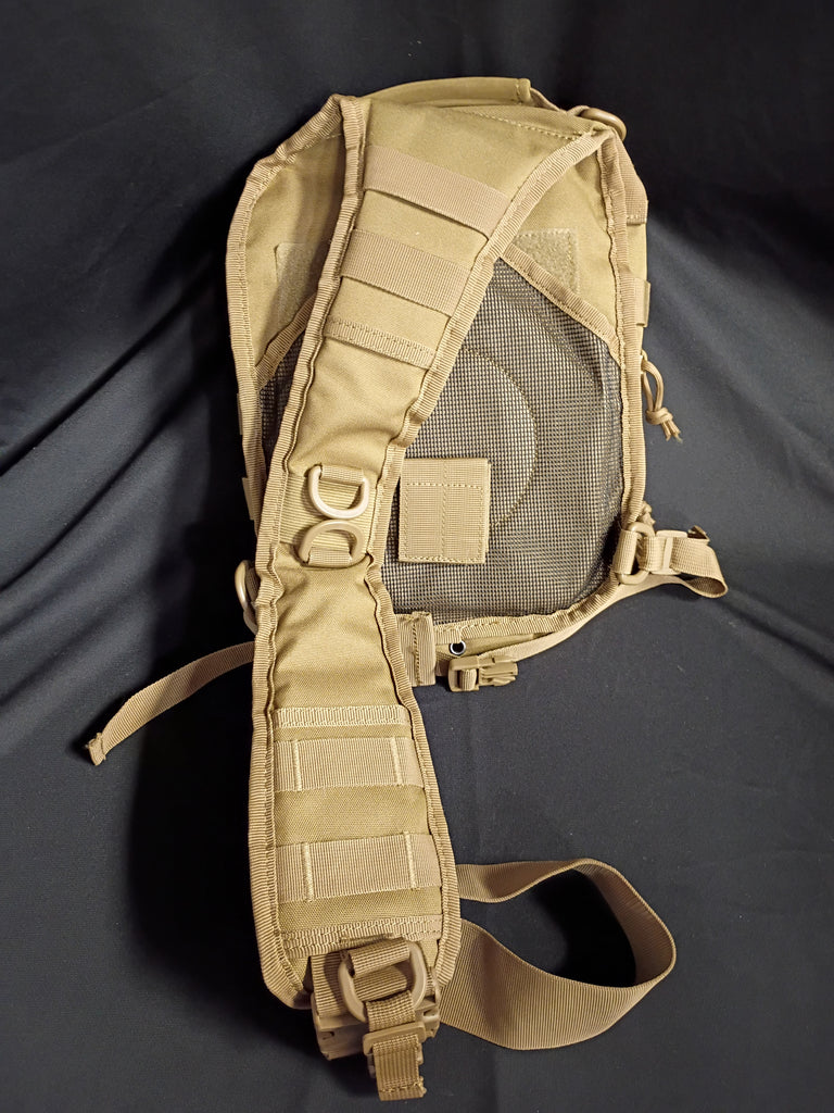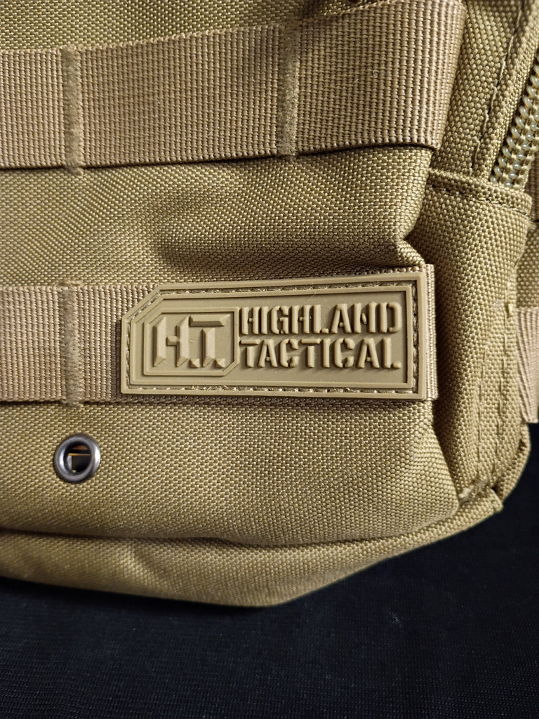 Tan tactical backpack by Highland. In like new condition. Measures 9"L x 3"W x 12"H.