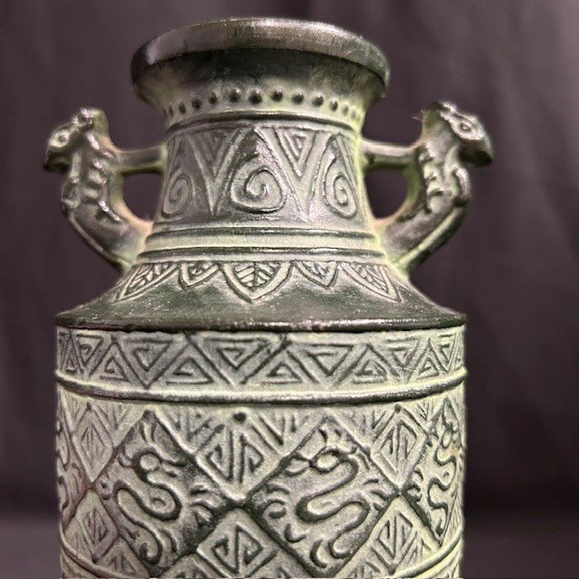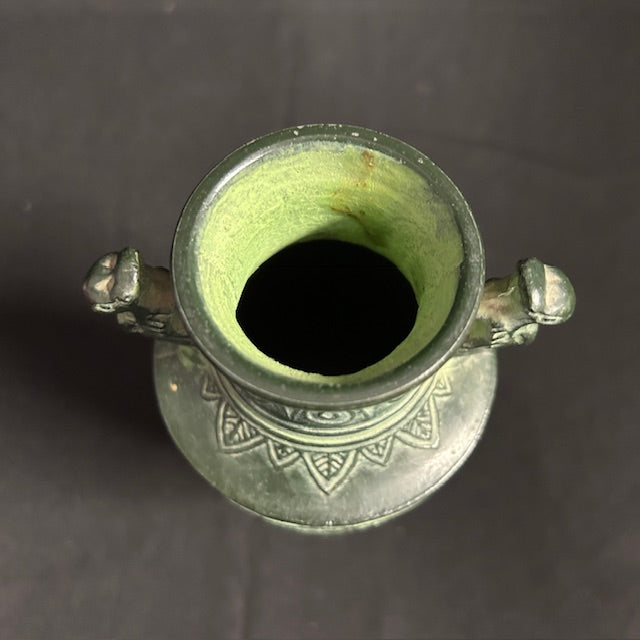 Japanese bronze vase. Archaic style; traditional relief pattern Measures 8.25"H x 4"W. In excellent condition.