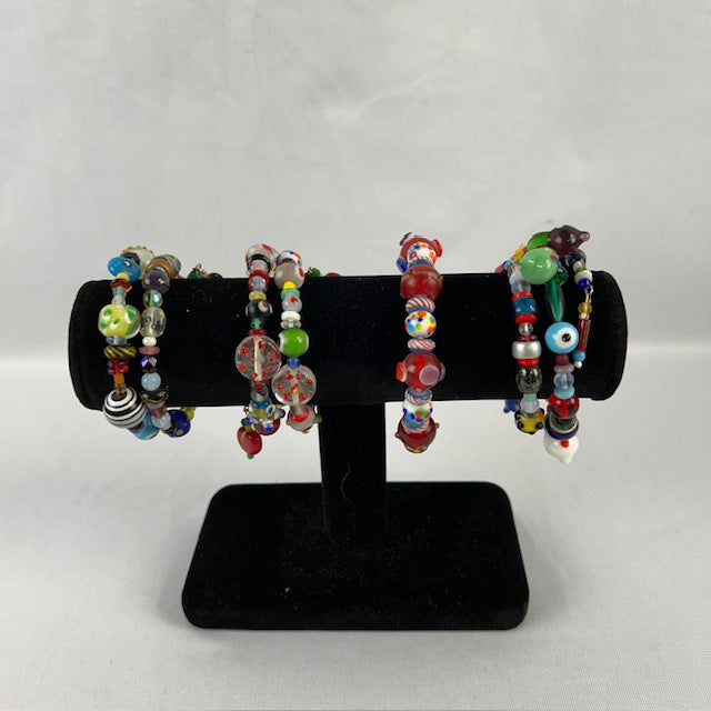 Lot of 4 Art Glass Beaded Bracelets