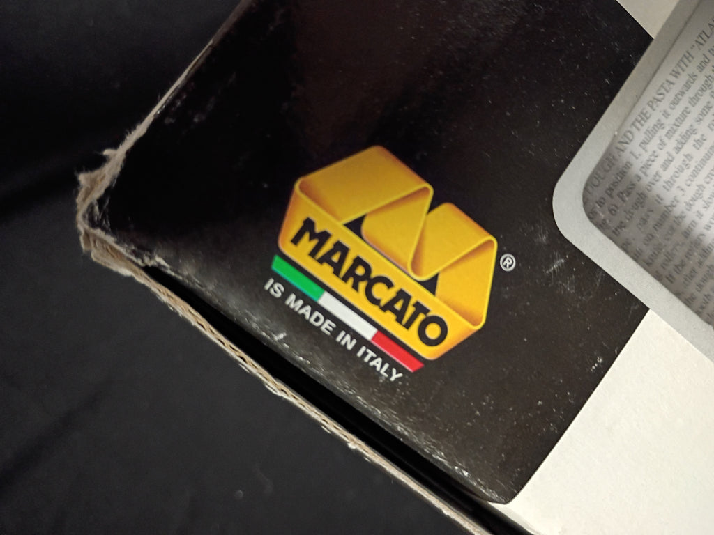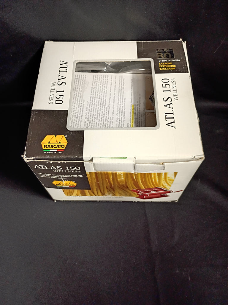 New in open box. Makes perfect lasagne, fettuccine and tagliolini. Stainless steel, chrome, and plastic with 10 possible thicknesses. 7" H