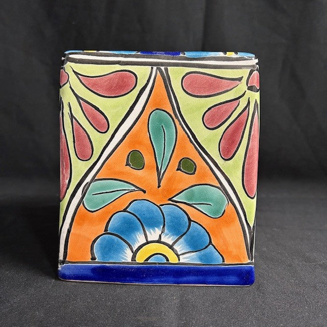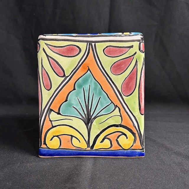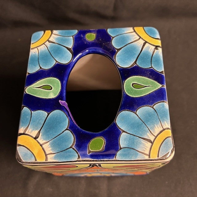 Beautiful Talavera art pottery tissue box holder in great condition. Measures 6"H x 5"W.