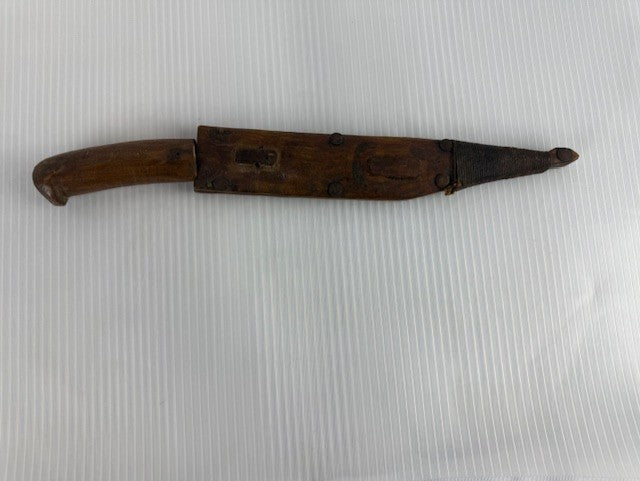 Vintage original Kaskara knife in wooden case 13"L x 2"W. Likely made in Sudan. In good condition.