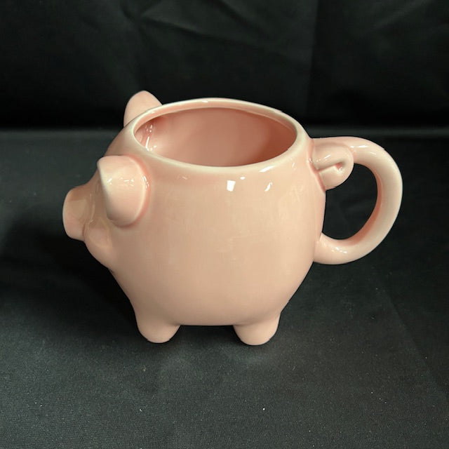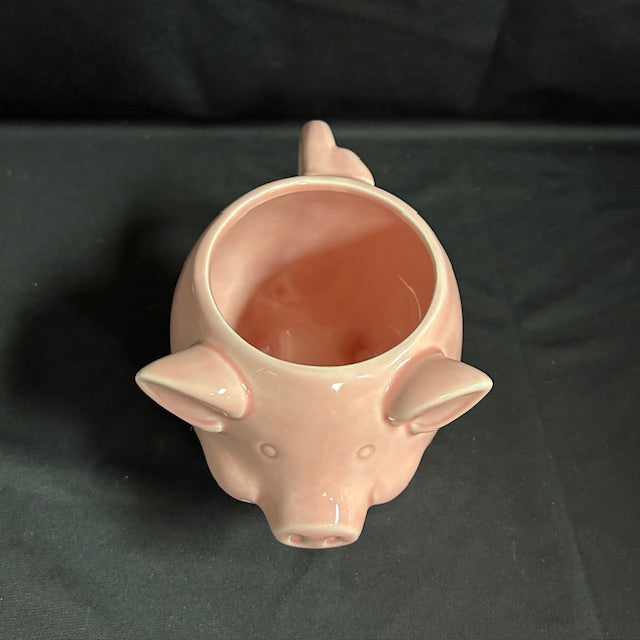 Measures 8"H x 5.5"W. Dishwasher safe. Adorable piggy in great condition. Could even be used as a planter!