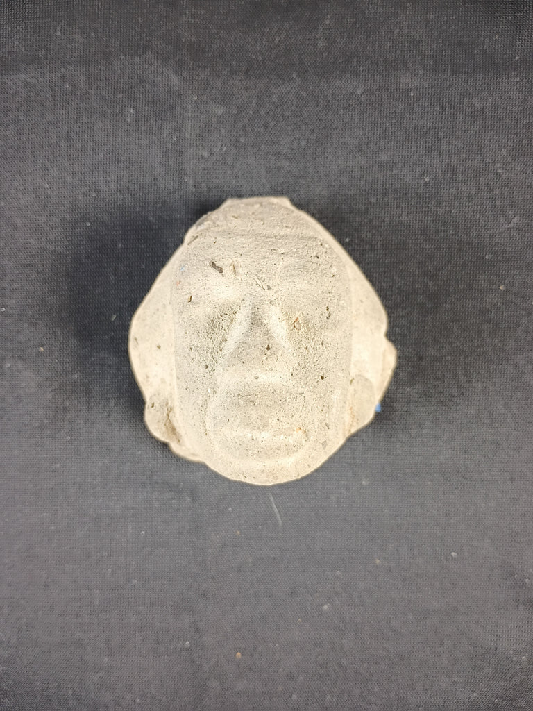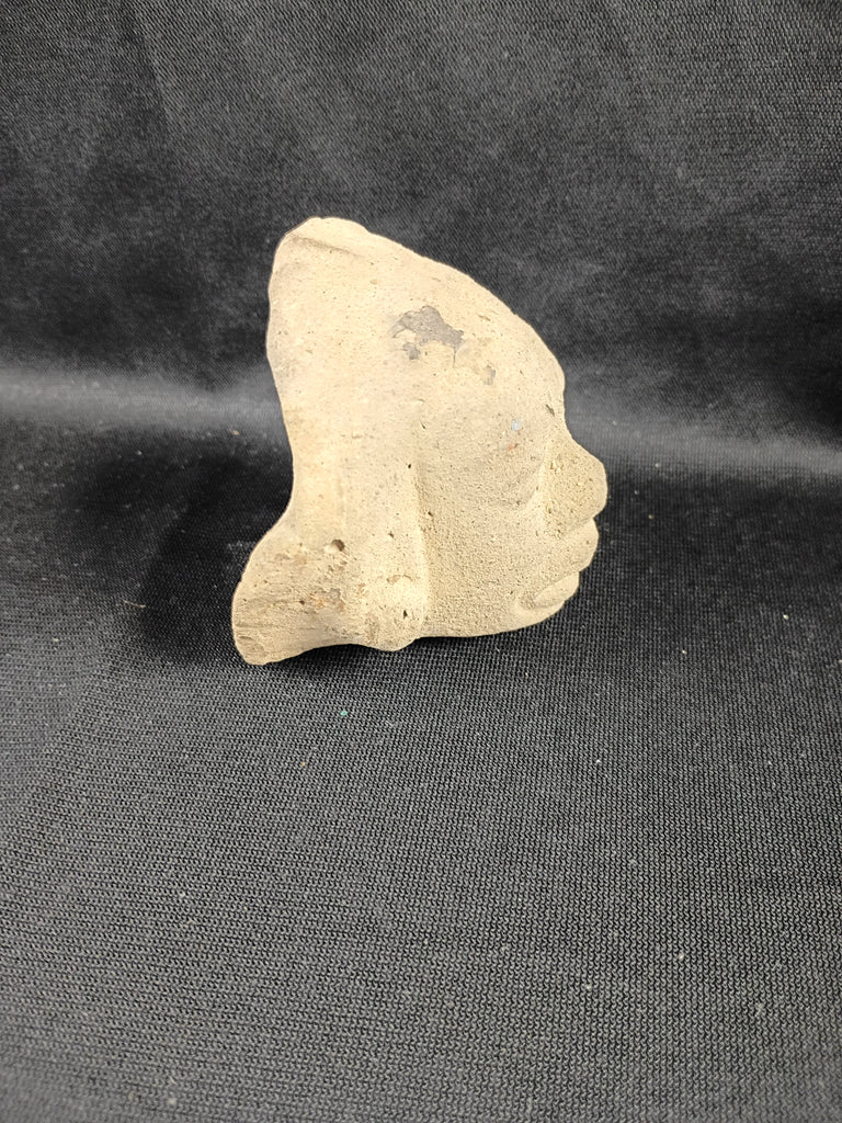 Replica pre-columbian pottery head. Measures 3"H x 2.75"W. In good condition.