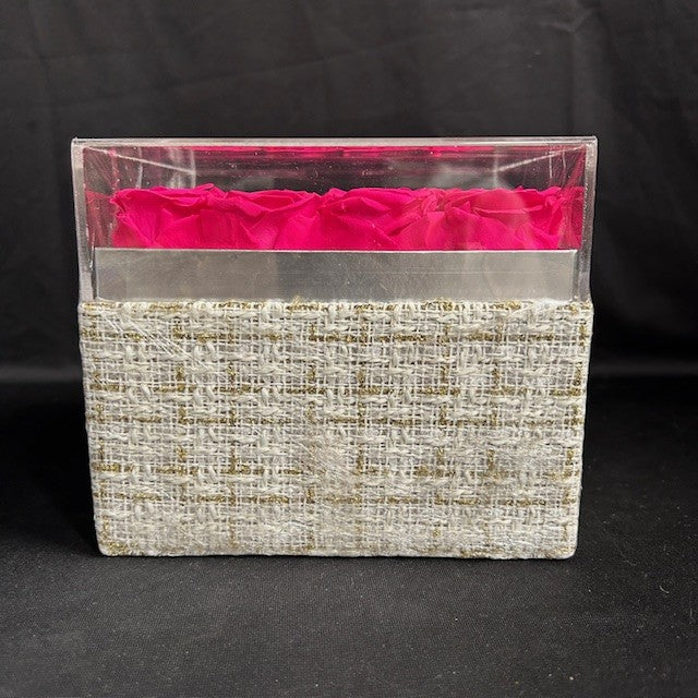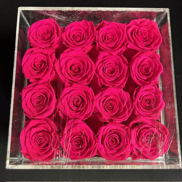 Preserved Pink Roses in acrylic decorator box. 16 roses. Appx 7" cube. Excellent condition.