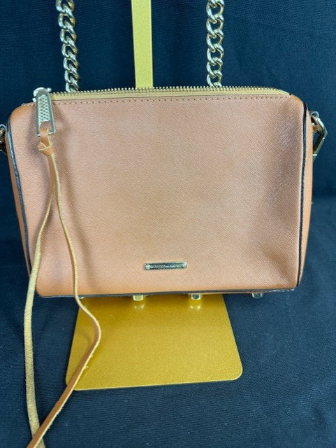 Rebecca Minkoff Chain Link Purse. Brown Saffiano Leather. This is their "Avery Crossbody" Bag. Measures 9"L x 1.5"W x 7"H, with a 21.5" strap drop. In excellent condition.