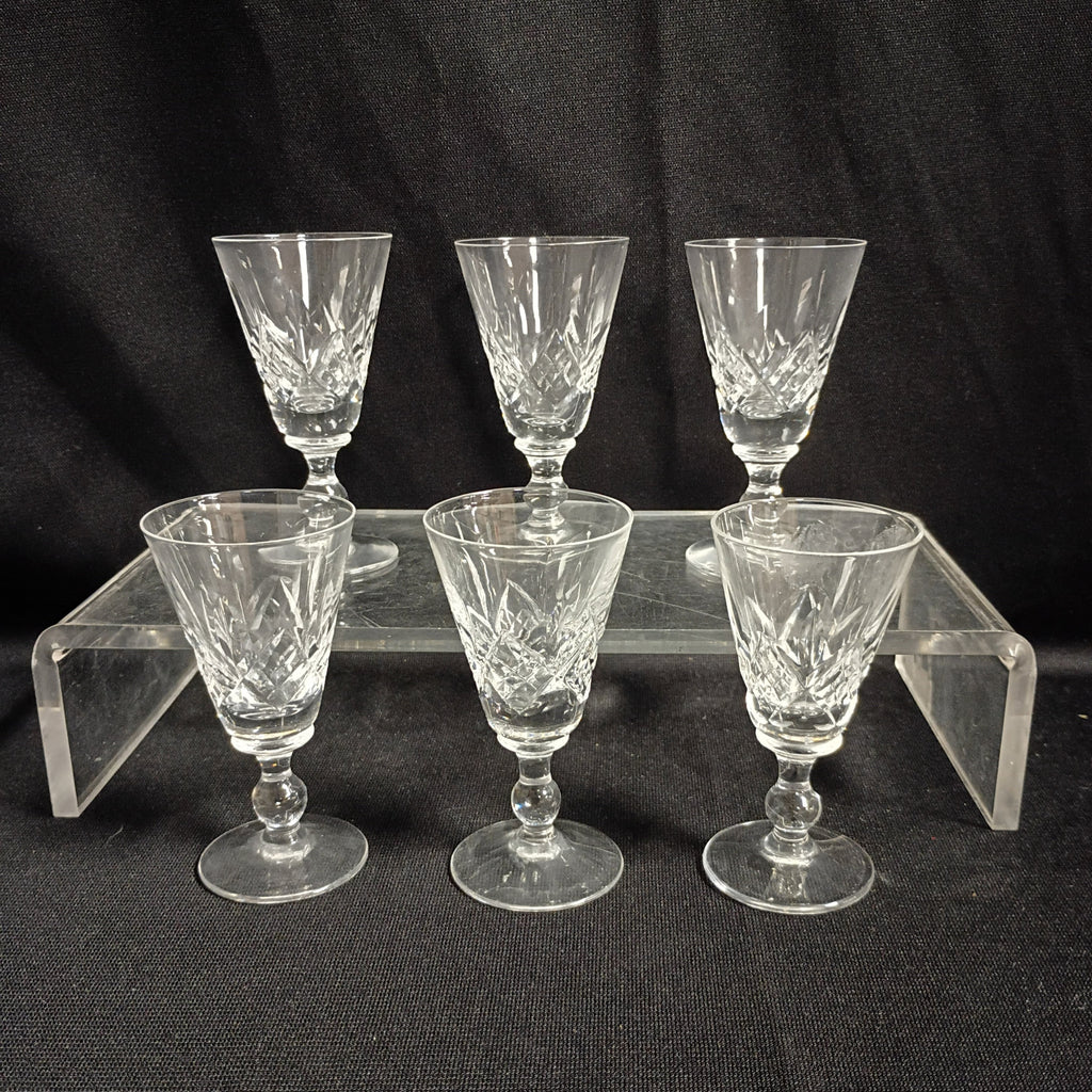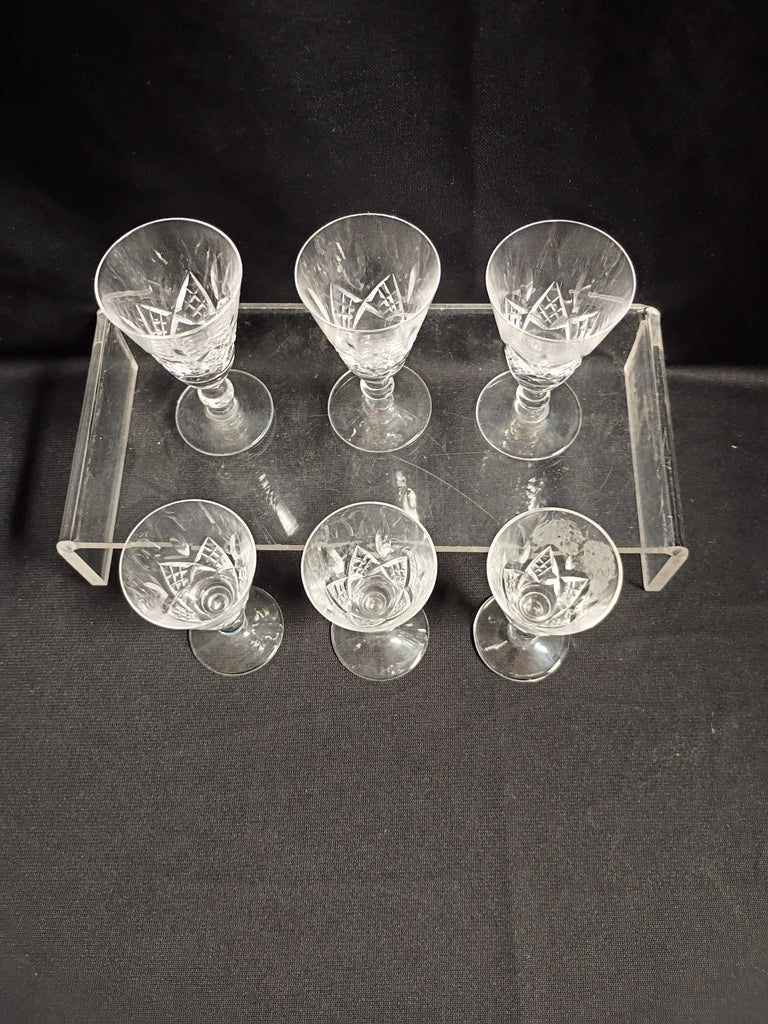 Set of six crystal sherry glasses vintage Measuring 3" h x 1 1/2" dia In very good condition.