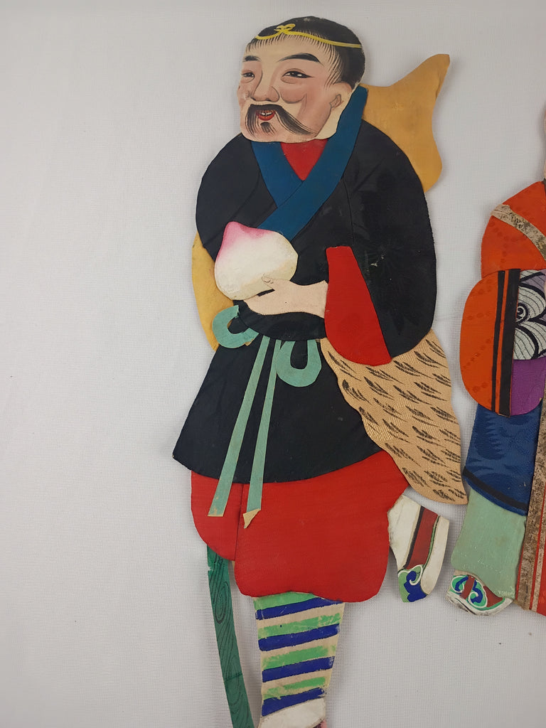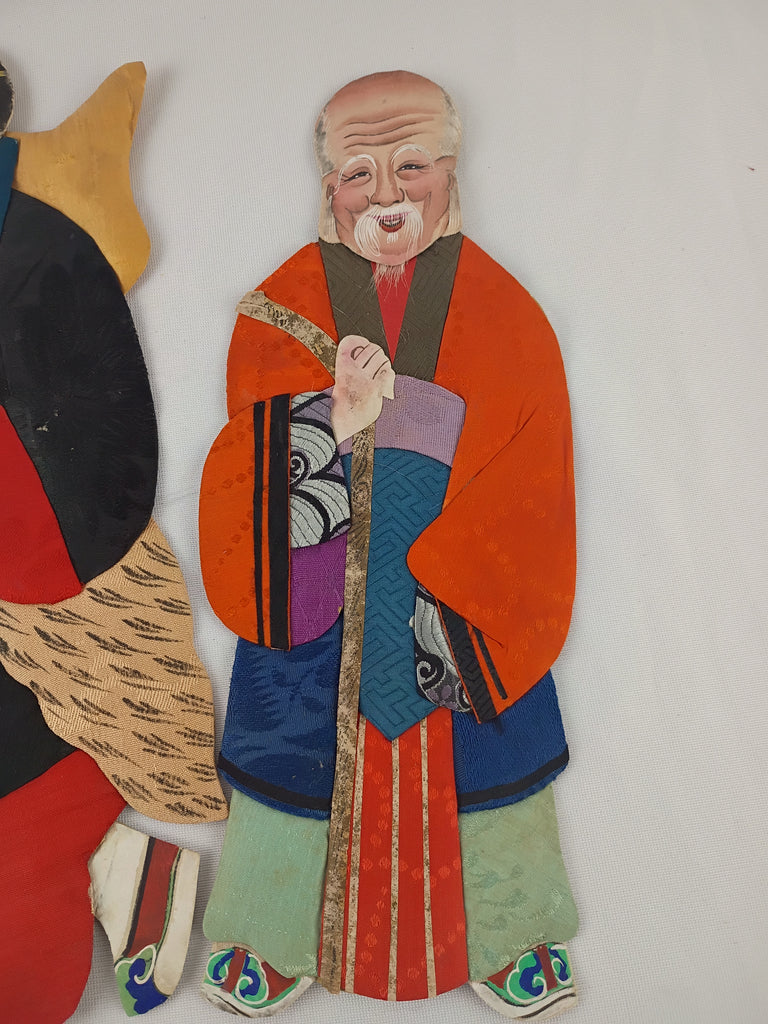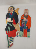Vintage asian cloth and paper dolls in great condition. One is an elder, the other a warrior. The warrior is larger and measures 15"L x 5"W, the elder is 11"L x 4"W.
