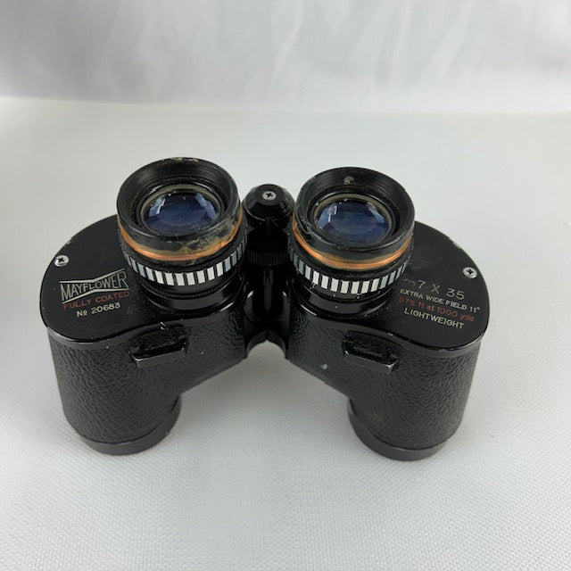 Vintage Mayflower Hard Coated Light Weight Binoculars w Original Case 7x35. Case and binoculars show wear but work.