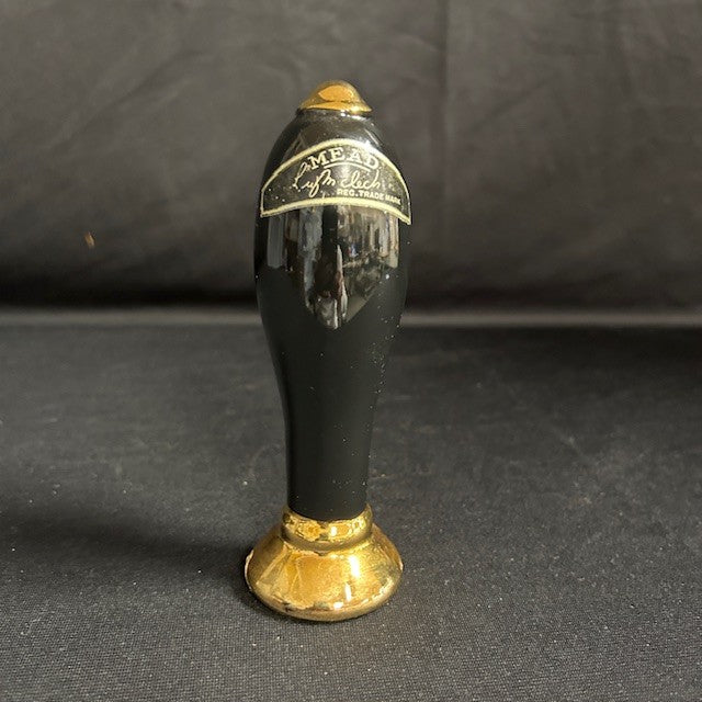 Novelty bottle designed to look like an ale pump handle. Labeled on the bottom "Aidee Novelties". Has original stopper in bottom. Measures 6"H x 2"W. In great condition.