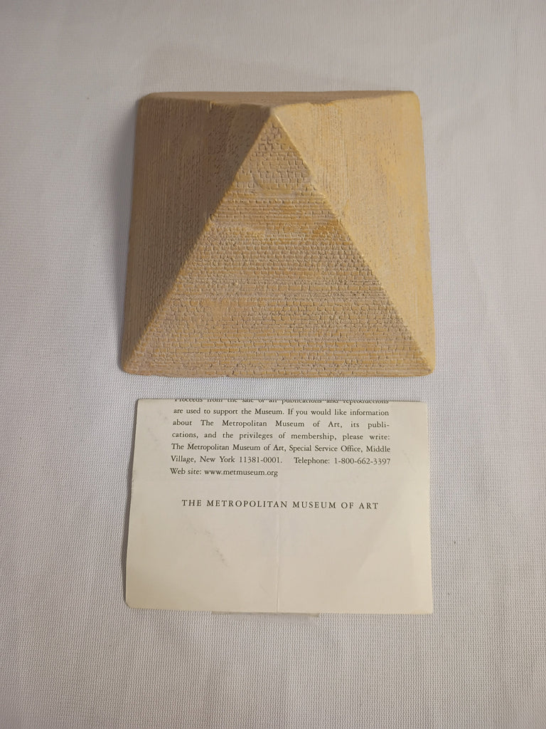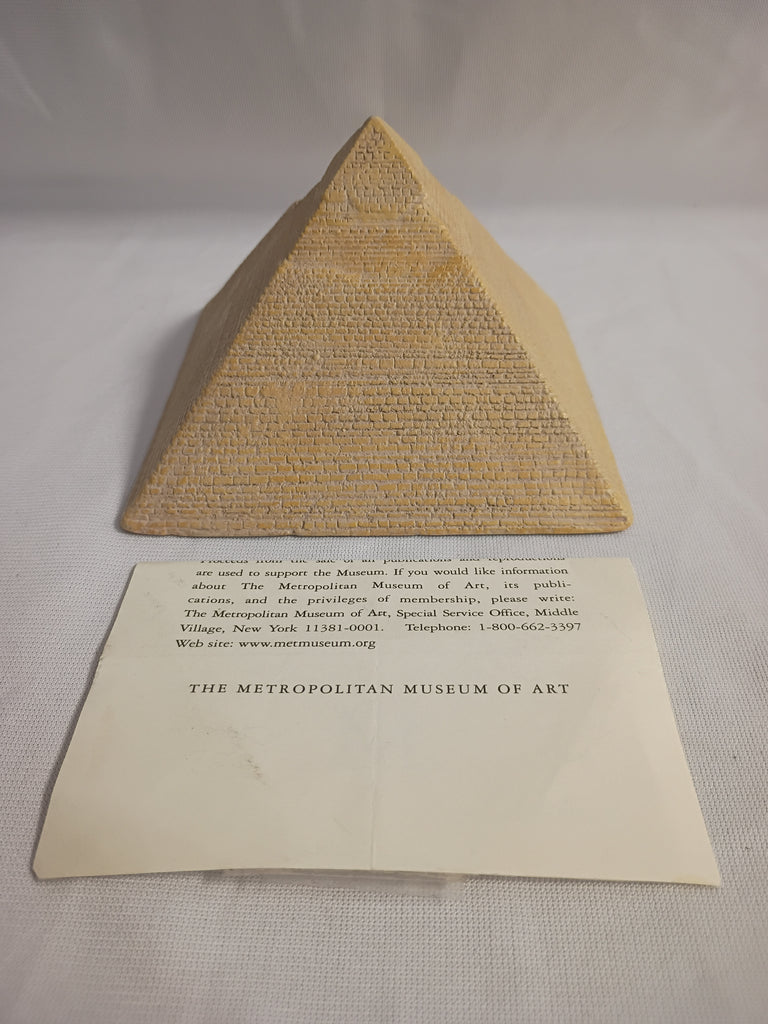 Pre-owned cast resin pyramid produced by the Metropolitan Museum of Art in New York. Measures 4" x 4". In great condition.