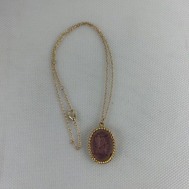 VTG Goldette Greek Mythology Intaglio Pendant Necklace