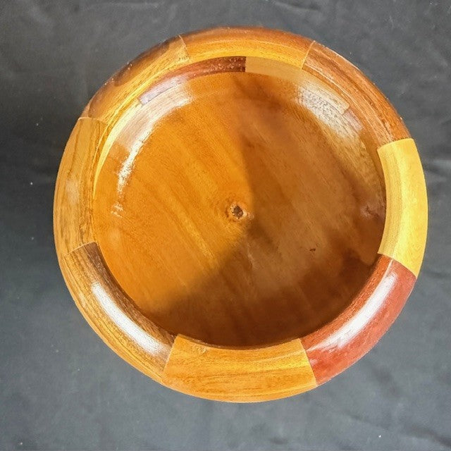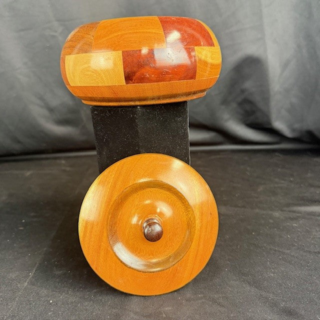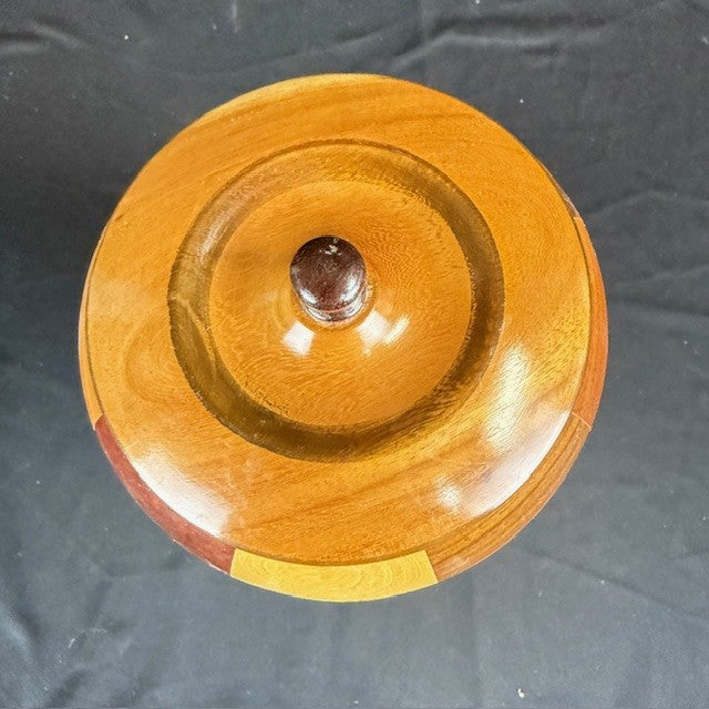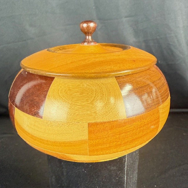 VTG Hand-Made Wooden Bowl w Lid Marquetry Inlaid Design 6" Diameter Trinket Dish Measures 3" H in excellent condition.