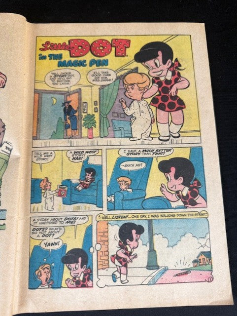 Harvey Comics' "Little Dot" issue Oct. No. 83. Printed in 1962, there is some wear on the cover and bottom of the back spine but in overall very good condition.