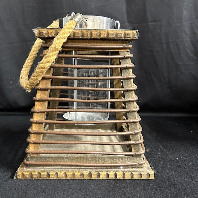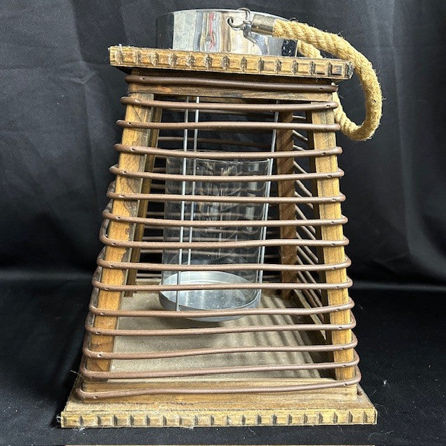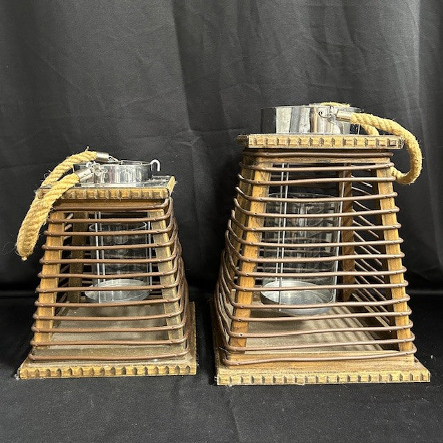 Wooden Candle Holders - Retro Industrial Style. Measuring: Large 12"H x 7"W; Small: 9"H x 6"W. Both in great condition. Suitable for pillar candles. In excellent condition.